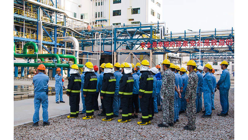16時20分,檢查人員發現雷擊導致裝置出現晃電,立刻上報現場指揮部,工藝人員按應急程序組織人員啟動晃停設備,投用消防設施,劃定警戒范圍。處置好晃電事故,大家剛松了一口氣時,又傳來了新的突發情況:聚丙烯裝置的循環氣壓縮機管道泄露導致著火。當班班長馬上安排班組人員到現場確認火情并上報現場指揮部,公司啟動應急預案:疏散人員、劃定警戒范圍,封閉事故現場,工藝人員采取工藝處置措施;消警隊出動消防車,進行撲救;化驗人員到場進行空氣監測,并向指揮部匯報現場即時空氣現狀。