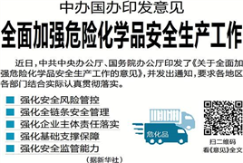 近日,中共中央辦公廳、國務(wù)院辦公廳印發(fā)了《關(guān)于全面加強(qiáng)危險(xiǎn)化學(xué)品安全生產(chǎn)工作的意見》,并發(fā)出通知,要求各地區(qū)各部門結(jié)合實(shí)際認(rèn)真貫徹落實(shí)。
